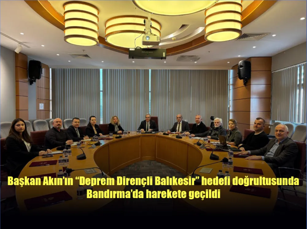 Toplantıya, Bandırma Belediye Başkanı Dursun Mirza, Balıkesir Büyükşehir Belediyesi Genel Sekreter Yardımcısı Reyhan Sunci Gülfırat, Güney Marmara Koordinatörü Murat Karakoyun, Deprem Risk Yönetimi ve Kentsel İyileştirme Daire Başkan Vekili İlknur Bozoklu Kirişçi ile daire müdürleri katıldı.