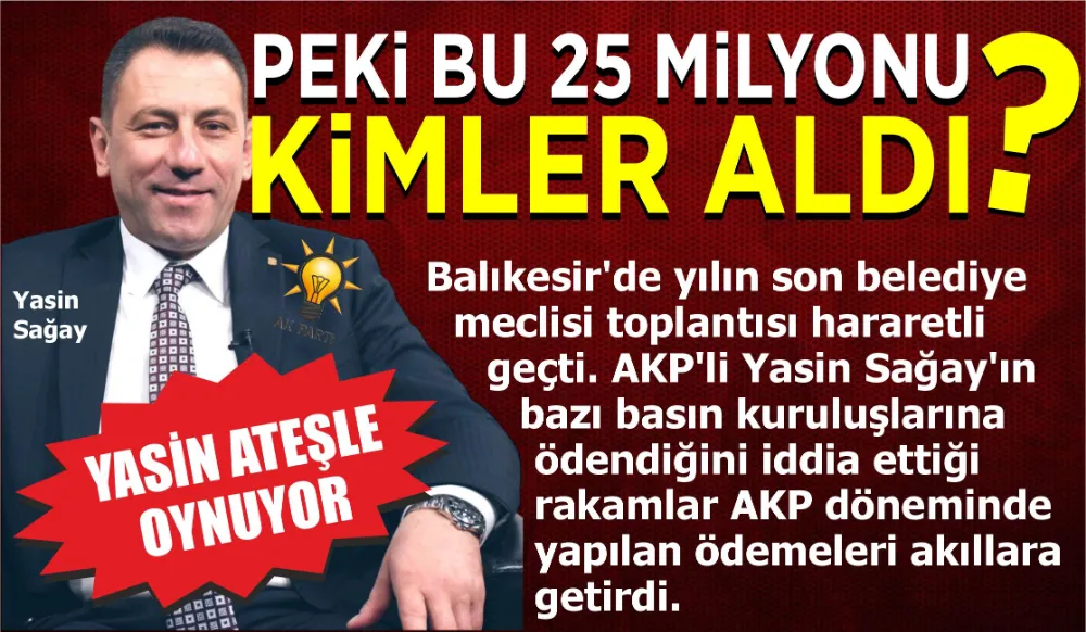 Balıkesir’de yılın son belediye meclisi toplantısı hararetli geçti. AKP’li Yasin Sağay’ın bazı basın kuruluşlarına ödendiğini iddia ettiği rakamlar AKP döneminde yapılan ödemeleri akıllara getirdi.