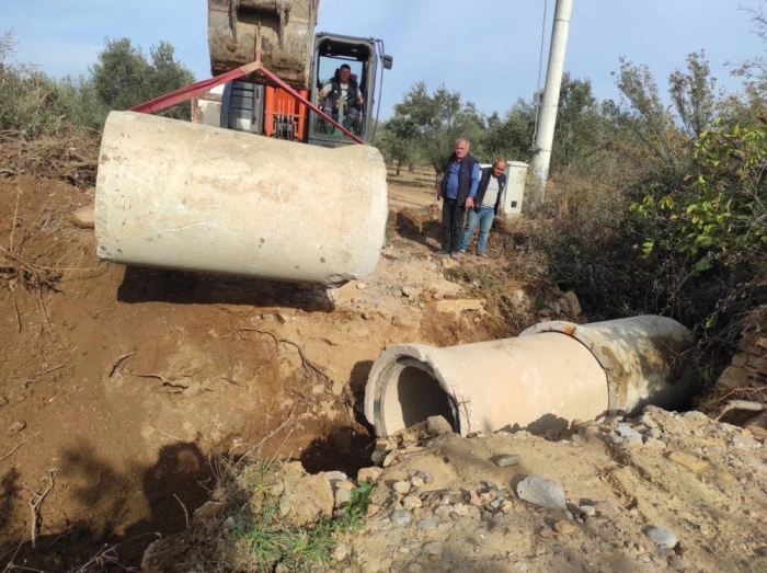 Burhaniye Belediyesi 800’lük büz borularla menfezleri yeniledi.