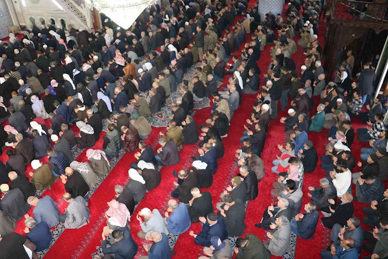Yoğunluğun yaşandığı programda, camiye sığmayan yüzlerce vatandaş, dışarıda serilen hasırlar üzerinde Cuma namazını kıldı.
