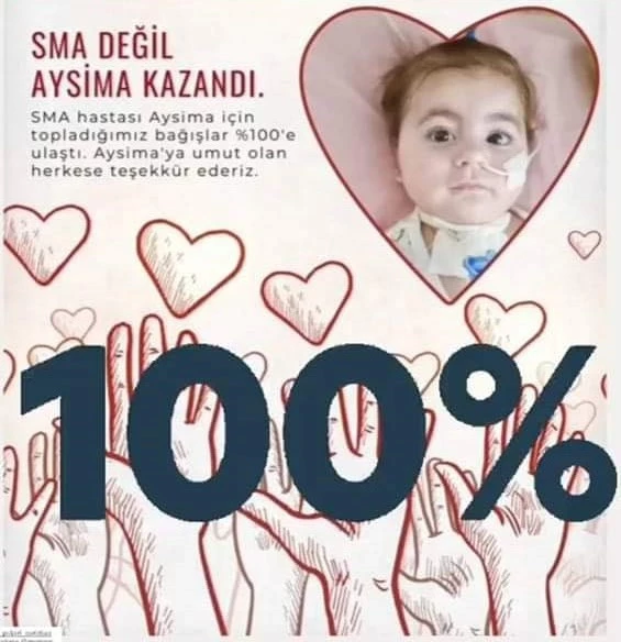 Balıkesir Karesi Kamçıllı Mahallesinde ikamet eden SMA hastası Aysima bebek için Balıkesir Valiliği izni ile yapılan yardım kampanyasında sona gelindi. Minik kızın tedavisi için gerekli olan 35 Milyon Türk Lirası STK’lar, yardımseverler ve Balıkesirli vat