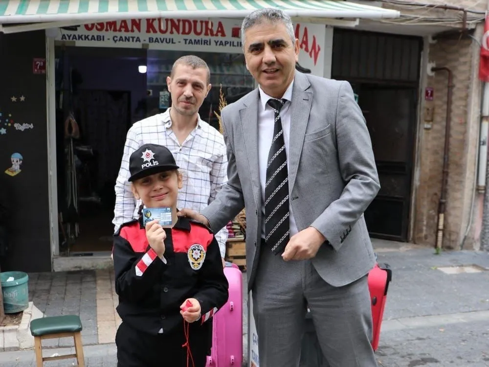 Balıkesir’in Bandırma ilçesinde polis kıyafeti giyerek araç sürücülerine emniyet kemeri taktıran 9 yaşındaki Elif’e fahri trafik dedektifi kimliği verildi.