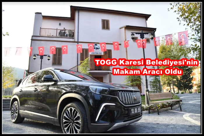 otomobili TOGG, ilçeye kazandırıldıKaresi Belediyesi’nde makam aracı olarak kullanılacakTOGG, ilçeye getirilerek Başkan Orkan'a teslim edildi.“ TOGG Karesi'ye Çok Yakıştı” Başkan Orkan, 10 KB 555 plakalı TOGG’un siyah rengi T10X modelini ilimize kazandırmanın gururunu yaşadığını söyledi.