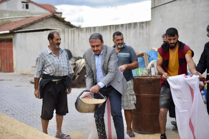 Vali Hasan Şıldak, Gönen İlçesi Gündoğan Mahallesinde üreticilerle çeltik hasadı yaptı.