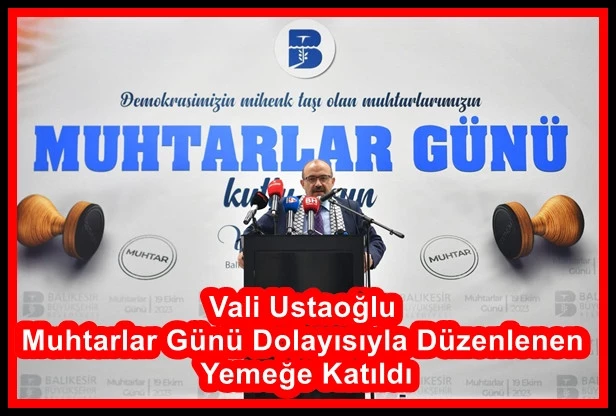 Kamu yönetiminde vatandaşa en yakın seçilmiş kişiler olan muhtarların yaşadıkları sorunlara dikkat çekmek amacıyla her 19 Ekim’in Muhtarlar Günü olarak kutlandığını sözlerine ekleyen Vali Ustaoğlu, “Bu vesileyle Balıkesir’de hizmetlerimizin en hızlı şekilde halkımıza ulaştırılmasında en önemli mihenk taşı olan Muhtarlarımızı, özverili çalışmalarından dolayı tebrik ediyorum. Tüm muhtarlarımızın 19 Ekim Muhtarlar Günü’nü en kalbi duygularımla kutluyor, ilimiz adına yapacakları bütün çalışmalarda başarılar diliyorum.”dedi.