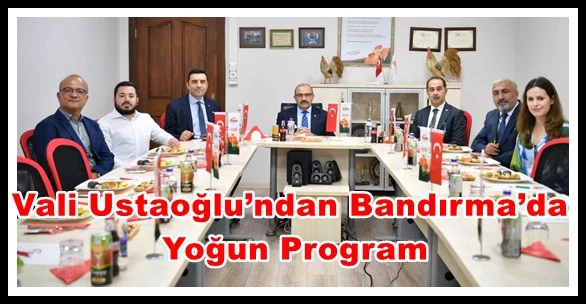 Vali Ustaoğlu daha sonra programı kapsamında Eti Maden İşletmeleri Bandırma Bor ve Asit Fabrikaları İşletme Müdürlüğü ile ilçede faaliyet gösteren Bupiliç İşletmesinde incelemede bulundu. İlçedeki temaslarına devam eden Vali Ustaoğlu Hicri Ercili Grup Şirketleri Yönetim Kurulu Başkanı Hayırsever İş İnsanı Murat Ercili ve Ticaret Borsası Başkanı Can Ata Tan’ı ziyaret etti.