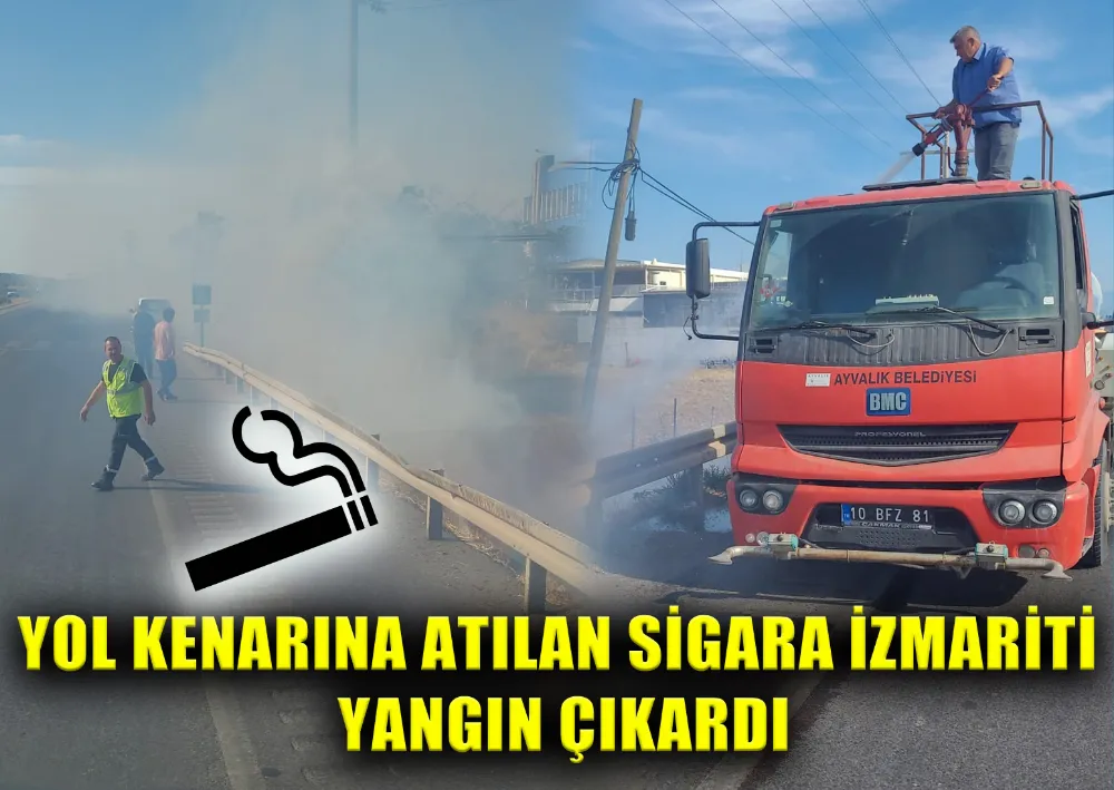 Ayvalık’ta, Çanakkale ile İzmir’i birbirine bağlayan E-87 karayolunun kenarında yanar halde atılan sigara izmaritinin kurumuş otları tutuşturmasıyla başlayan yangın, tesadüfen oradan geçmekte olan Ayvalık Belediyesi bünyesindeki Park Bahçeler Müdürlüğü ekiplerinin, hemen su tankerinin vanalarını açarak müdahalesiyle söndürüldü.