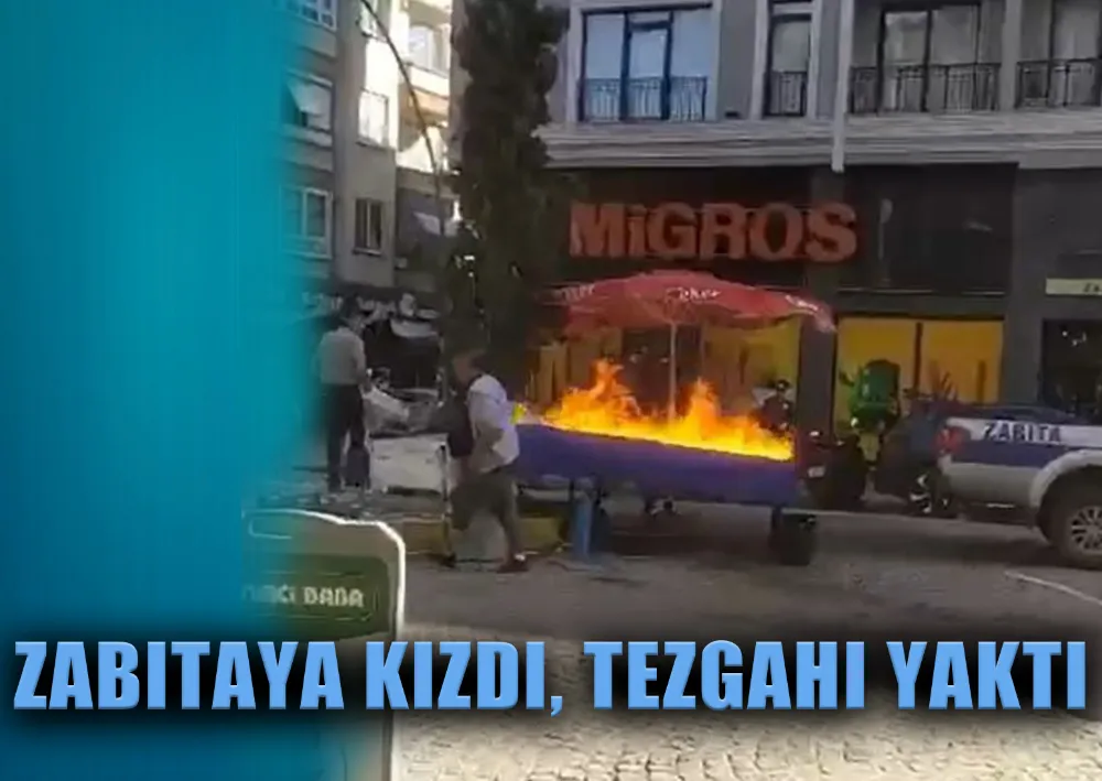 Erdek Belediyesi’ne bağlı zabıta ekipleri ilçenin merkezinde balık satan seyyar satıcıya işlem yapmak istedi. Mert M. adındaki seyyar satıcı ise ekmek parasını kazandığını ancak kimseye zararının olmadığını söyledi. Zabıta ekiplerinin tezgaha el koyacağını belirtmesi üzerine sinirlenen seyyar satıcı, bir anlık öfke ile seyyar tezgahını ateşe verdi. O anlar ise çevredeki vatandaşlarca saniye saniye cep telefonları ile kaydedildi.
